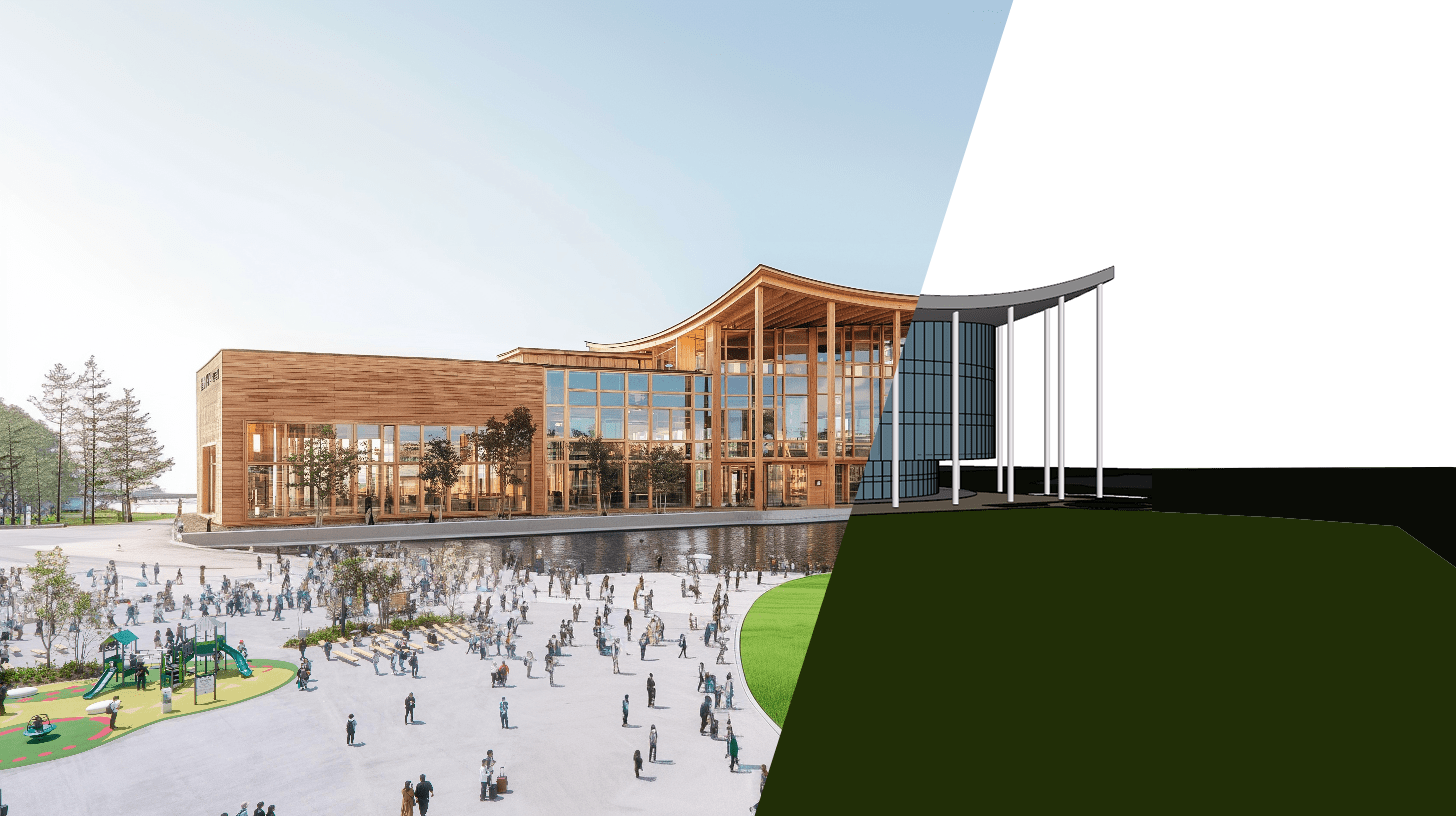 아울러 전통적인 건축 렌더링 과정을 Midjourney 를 이용해 마음껏 구성을 다르게 하여 구현해 봅니다.